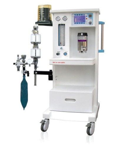 Anesthesia machine(THR-MJ-560B2). Detailed Product Description MJ-560B2 anesthesia machines design is union the modern advanced technology and with its strong practicality, which is a machine of excellent performance and fully functional. The remarkable performance, the preferential benefit price, constitutes the best performance-to-price ratio, causes the user to obtain the over #118alue to enjoy. This machine uses in respiratory control, respiratory intensive care, 5.1-inch high clear display, and real-time reflection respiratory system condition; . The high-precision evaporator has the stable output concentration with pressure, temperature, and flow automatic compensation; Choose one among Enflurane, isoflurane and sevoflurane for a matching. Reliable gas Power transmission system; Reasonable economic and multiple technology configuration, the user s may choose flexibly; Modular product design According to customers needs upgrade. Main technical parameters Part of Anesthesia Machine Console High-strength engineering plastic rack, light, beautiful and corrosion resistance Scope Adults, Children Gas source oxygennitrous oxide: 0.3~0.5MPa Flow meter oxygen: 0.1~10L/min nitrous oxide: O. 1~10L/min Oxygennitrous oxide linkage and nitrous oxide Truncation device When use nitrous oxide, oxygen concentration﹥25%; When the oxygen pressure<0.2Kpa, the flow of nitrous oxide would be cut off.ut off. Rapid oxygen flow 35~75L/min Vaporizer It has the function of pressure, temperature, and flow automatic compensation. The regulation range of evaporator concentration is 0~5vol%. Choose one among Enflurane, isoflurane and sevoflurane for a matching according to the demands of customer. Low oxygen pressure alarm It will be alarmed when the oxygen pressure < 0.2MPa2MPa Respiratory circuit Work mode all close. Semi-close. Semi-open Pressure release 1~4KPa Bellows breathing Adults and children bellows Tidal volume range: 0~1500ml Part of Ventilator Display mode 5.1-inch high clear display, Ventilation mode IPPV SIPPV Artificial monitoring MANU(monitor the tidal volume. Ventilation. Respiratory rate. Ratio. Peak pressure when use hand. )PLVPEEP Ventilation parameters Tidal volume 50~1500ml Frequency 6~60/min breath /expiratory ratio 2: 1~1: 4 Trigger sensitivity -1.0~-0.2Kpa PEEP 0.2~1.0Kpa Pressure Control 1~6.0Kpa Ventilation monitoring parameters tidal volume. Ventilation. IPPV ratio. Total respiratory rate. Breath /expiratory ratio. Peak pressure. Pressure control. Airway pressure wave. Breath pressure trigger. PEEP. Minimum pressure. Monitoring oxygen concentration 21%~100%(choose and match) Security Alert System Oxygen Concentration alarm upper limit setting range 50%-100% (choose and match) low limit setting range 15%-50% Airway pressure alarm upper limit setting range 1.5~6.0Kpa low limit setting range 0.2~3.0Kpa Alarm minute ventilation upper limit setting range 2~30L/min low limit setting range 1~12L/min Asphyxia alarm The machine will give sound and light alarm if there is no tidal volume input in 15s Power failure alarm Power AC 220V± 10% 50Hz± 1Hz UPS. Battery. (choose and match)oose and match)oose and match)