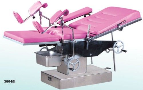 Multi-Purpose Obstetric Table (3004) 3004 multi-purpose obstetric table is designed for delivery, abortion and gynecological examination. It is characterized by easy operation, safely and reliability, economical use. It is composed of bed surface, bedstead and bed base. The surface includes back section, seat section and leg section. The up-down movement of back section and the forward and back tilt of bed surface are controlled by the operating hand wheel, which makes doctors and patients feel comfortable. Main specification parameters Length and width of table: 1800mm x 600mm Height adjustment range: (Min) 650mm x (Max) 895mm Sizes of sections Back section: 600mm x 800mm Seat section: 600mm x 400mm Leg section: 540mm x 500mm Max. Degree of back rest adjustment: Up﹥75° Down﹥6° Down>6°; Down>6° Max. Degree of forward and backward tilting of tabletop: Forward﹥10° Backward﹥25°ward>25°;ward>25° 3004 multi-purpose obstetric table is designed for delivery, abortion and gynecological examination. It is characterized by easy operation, safely and reliability, economical use. It is composed of bed surface, bedstead and bed base. The surface includes back section, seat section and leg section. The up-down movement of back section and the forward and back tilt of bed surface are controlled by the operating hand wheel, which makes doctors and patients feel comfortable. Main specification parameters Length and width of table: 1800mm x 600mm Height adjustment range: (Min) 650mm x (Max) 895mm Sizes of sections Back section: 600mm x 800mm Seat section: 600mm x 400mm Leg section: 540mm x 500mm Max. Degree of back rest adjustment: Up﹥75° Down﹥6° Down>6°; Down>6° Max. Degree of forward and backward tilting of tabletop: Forward﹥10° Backward﹥25°ward>25°;ward>25°