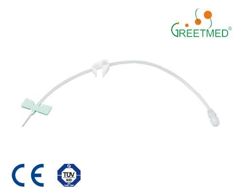 Hospital Medical Disposable a. V. F Needle: Description: Rotating hub with color-coded marks indicating bevel up or bevel down positions. Soft PVC tubing. Can activate the safety mechanism with a one-handed technique. Large, ergonomic wing design. Gammasterilization. Sharp-edged bevel design, precise polishing and silicone coating.
