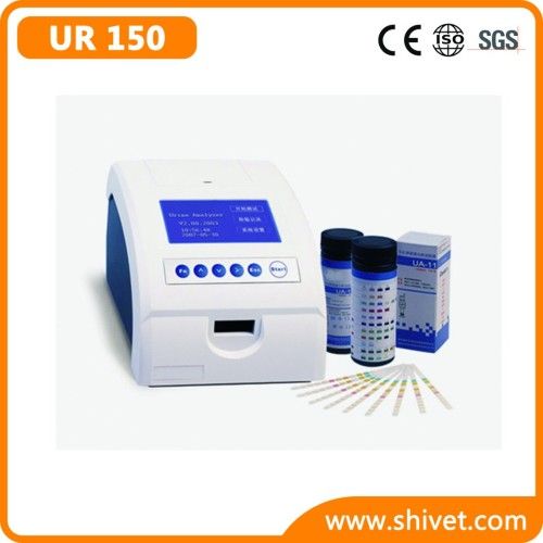 Veterinary Urine Analyzer Model: UR 150 Features: 5' Large LCD Displayisplay Compact size, low weight Cold light source, high luminosity with long life time Auto save data in case of power failure Up to 1000 results memory Built-in thermal printer Easy connection with PC by RS-232 Easy accessible design enables User-DIY maintenance Specifications: Test items: Leucocytes, Birirubin, Occult Blood, Urobilinogen, Ketone, Glucose, Protein, PH, Nitrite, SG, VC Throughput: Standard mode: 60 samples/hour; Fast mode: 120 samples/hour Display: 5' Large LCDge LCD Memory: 1000 samples results Output: Built-in thermal printer Interface: RS-232 Power supply: AC 110-220V, 50/60Hz Net Weight: 2kg Dimension: 185mm*260mm*157mm (L*W*H)