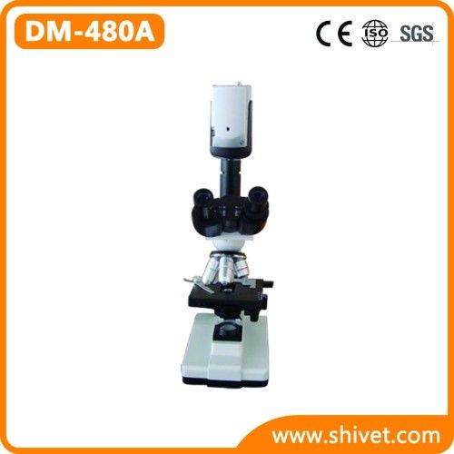 Binocular Video Microscope with CCD Camera(DM-480A) Model: DM-480A There is a medical Sony CCD camera and USB cable line with the camera, so the microscope could beconnected with your computer, TV, monitor and so on. And the magnified image on the screen will be very clear because the maximum magnification of the camera is about 1.3 megapxiel. It could be used to analyze bacteria, blood and so on. Besides, all accessories you need are all prepared for you such as the dust cover, cedar oil, one box of cover slip, two boxes glass slide, USB cable line, video line and so on. Below is technical parameters of this binocular microscope 1. Camera: 1/3 SONY CCD 2. Camera image sharpness: Over 480 lines 3. Wide field eyepiece: WF10X 4. Achromatic Objective(s): 4X/0.10X/0.25, 40X/0.65, 100X/1.25(oil) 5. Converter: Dumping four-hole, ball bearings positioning. 6. Stage: Double layers mechanical stage two biopsy forceps 7. Focusing; Coaxial coarse and fine focusing, Triangular steel column rails, move more smoothly 8. Condenser: N. A. 1.25 Oil (Abbe condenser, numerical aperture 1.25), iris diaphragm, adjustable condenser Center 9. Illumination: Cora lighting, halogen lamps, brightness adjustable 10. Power Supply: Switching power supply, wide voltage
