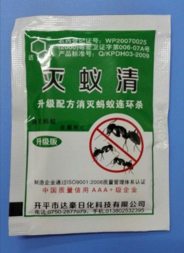 Ant killer (powder of new formula) Description: This powder has special efficiency to kill Ants. Using method: Divide the powder into 3 - 4 parts and locate them on the place where ants are found. The all ants will be killed by infecting in three days after eating the powder. Specification: 1000 bags / carton gross weight: 6.5kg