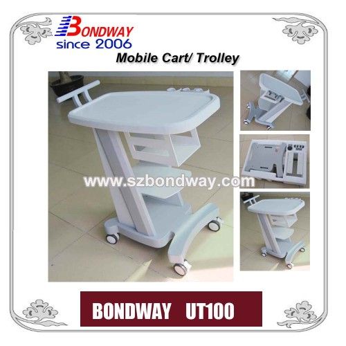 Products Information: This Trolley is specially designed for PORTABLE ultrasound machine and other medical devices 1. Full protection to ultrasound machine, probes, video printer, etc. 2. Made of ABS, strong & light weighteighteight 3. With Wheel-brake, easy to move and stop anywhere at any time Parameters about Trolley: Length: 783.05mm Width: 407.82mm Height: 800.08mm CARTON Dimension 870mm (L) X 540mm(W) X 370mm(H) N. W: 14.8 kg G. W.: 20KGS