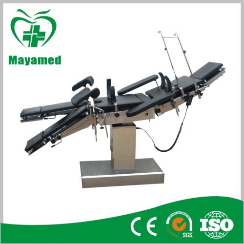 Specification: 1.Lenght:2000mm 2.Max Height:1000mm 3.Width:500mm 4.Min Height:750mm 1.Reversed Trendelenurg ≥22°e;22°eg;e;22° 2.Trendelenurg ≥22°;22°deg;;22° 3.Lateral Tilt ≥15°;15°deg;;15° 4.Head Section Raised form the Horiyontal ≥45°;45°deg;;45° 5.Head Section Lovwered form the Horiyontal ≥90°;90°deg;;90° 6.Back Section Raised form the Horiyontal ≥45°;45°deg;;45° 7.Back Section Lovwered form the Horiyontal ≥15°;15°deg;;15° 8.Leg Section Lovwered form the Horiyontal ≥90°;90°deg;;90° 9.Leg Section Opened ≥90°;90°deg;;90° 10.Kidney BRIDGE Elevation ≥120mm20mm20mm 11.Supply AC 220±10% 50Hz10% 50Hz10% 50Hz 12.Volume 1405x725x885MM This type operating table is suitable for surgical operations of the head, neck, thorax, perineum, abdomen and extremities as well for gynaecological, urology, ophthalmology and otorhinolary and brain surgery operations. The leg panel can be disassembled and easily adjusted. The double skin table panel adopted the high strength transparent board, which can be used for X-ray examination. All the movement of the table is controlled by electric drive pusher with safety and reliability.