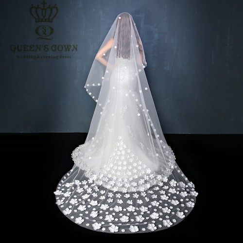 | Specifications Size | Concealed around the outermost length 80CM, veil 3.5 meters long, 3 meters wide. Veil has a layers, with insert comb design, the mesh sewn lace flower decoration. |