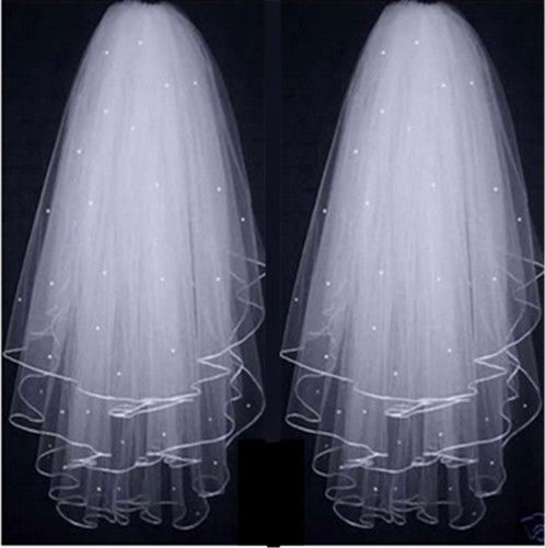 | Material | Veil are used in high-grade materials, imported soft gauze, car bone lace, have inserted comb, can be directly inserted in the head band.handmade sticky beads. |