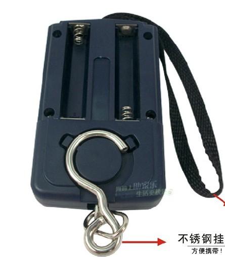 1, the start: the electronic scales hanging it in a vertical state, press the POWER button to turn after the zero weight display, the objects hanging hook, display windows weight of the items of the absence of any key operation 60 seconds, the product automatically. shutdown.