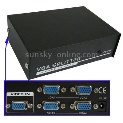 This 4 Port Video Splitter takes the Computer's video signal and displays it on up to 4 analog monitors. The Splitter is also a boosting device that extends the video signal transmission distance up to 65m (213') , making it an excellent choice for video broad cast systems.