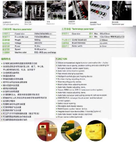 2) The cover, cardboard, central spine board can be adjusted and positioned accurately, Adaptable thickness of cardboard can be up to 5mm . |