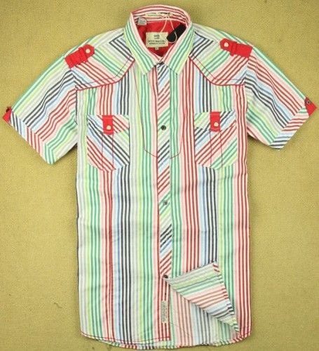 Men Stripe Colorfully Short Sleeve New Fashion Shirt