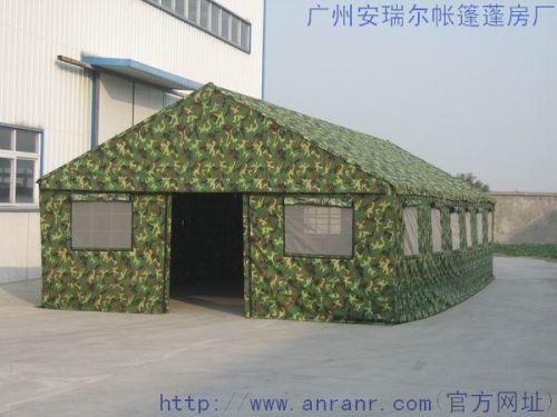 Second, the material: pole, spray steel fabric colors: army green, camouflage Third, the detailed parameters 1. eighty-one class with a single tent at the bottom of the square, the roof is hipped spire tent pole, while opening a door, the other three sides have two ventilation windows, canopy as a whole. security role can be in effect under the most unfavorable load combination 8 centimeters of snow and heavy wind 8 2. Expand the tent after a long 4.5m, 4.5m wide , roof height 3.2m, use area 20.25㎡ can meet the basic functional requirements of 10-14 people stay put and debris storage. 3. withdrawal means the total mass of the tent 44kg, packaging volume 0.138m3. package morphological rules, easy packing. The tent structure is simple, parts versatility, easy to expand. 30 minutes / six people can be set up is complete, 15 minutes / 6 people can complete dismantling. 5. age ≥ 2 years of continuous use, storage time ≤8 year.