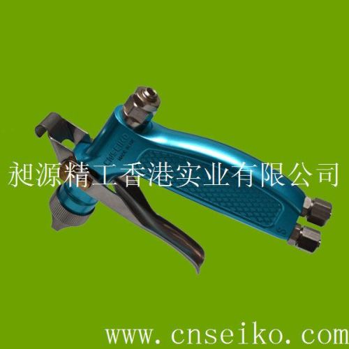 Trace gun theme and the head are made of stainless steel materials, the gun body is made of aluminum alloy, spray gun nozzle, main gun body, trigger control valve, a liquid feed interface and compressed air inlet.
