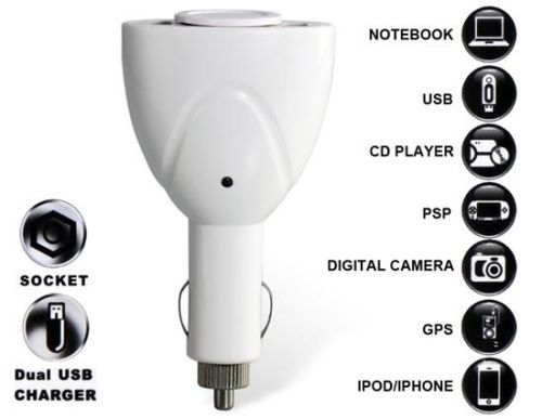 | Suitable for iPhone 4/ 3GS/ 3G, iPod Touch/ Classic/ Nano, mobile phones, MP3 players Charges two devices at the same time Equipped with built-in smart short-circuit protection Safe and convenient to use The USB port uses shock resistant components for improved stability | |