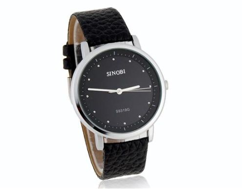 SINOBI Stylish PU Leather Wrist Watch (Black) M.