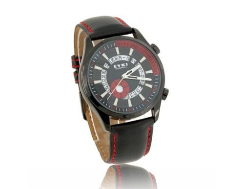 EYKI 8453 Leather Watchband Men's Wrist Electronic Watch with Calendar and Week Display (Black) M.