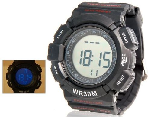 | Wirelessly receiving heartbeat signal transmitted from heartbeat brooch Give alarm when heart rate exceeds the upper or lower limit values (60-220) Equipped with alarm clock function 12/24 hour displaying format Equipped with EL backlight Keystroke tone 30 m water resistant and glow-in-the-dark | |