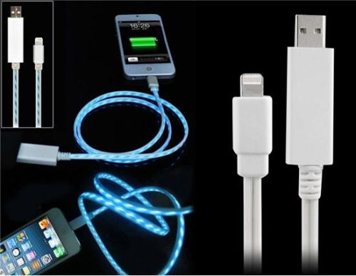 | Suitable for iPhone 5, iPod Touch 5, iPad 4, iPod Nano 7 Data transmission and charging Double wired conductor With LED light and gives out blue light when connected to power source | |