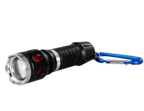 | Super bright 3-mode LED flashlight Adjustable focus Equipped with a D-shape carabiner Great for outdoor use including hiking, camping and fishing | |