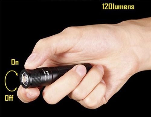 | 120Lumens 3-mode super bright LED flashlight Highly effective current circuit board High efficiency circuit enables maximum runtime of up to 60 hours Active dimming system with auto-adjust function Soft turn-on mode and low illumination for everyday usage One-handed operation, very convenient Board voltage circuit, compatible with primary or rechargeable Li-ion batteries Reverse polarity protection Equipped with integrated lens Constructed from aerospace grade aluminum alloy Type III military grade hard anodizing Waterproof design Supports tail stand function | |