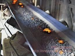 : | Features Resistant conveyor belt is a multilayer rubber cotton canvas (cotton cloth) from top to bottom is covered with refractory or heat-resistant rubber, high temperature vulcanization bonded together, for delivery the following 240 ℃ hot coke, cement, slag and hot casting etc. . 1, Specification with ordinary conveyor belt. 2, the implementation HG2297-92 and GB / T20021-2005 standards. 3, heat-resistant conveyor belt can be divided into five models: Type Ⅰ: resistance is not more than 100 ℃ test temperature, the maximum short-term operating temperature of 150 ℃, code-named T1. Ⅱ type: resistance is not greater than 125 ℃ test temperature, the maximum short-term operating temperature of 170 ℃, code-named T2. Ⅲ type: resistance is not greater than 150 ℃ test temperature, the maximum short-term operating temperature of 200 ℃, code-named T3. Ⅳ type: resistance is not greater than 175 ℃ test temperature, the maximum short-term operating temperature of 400 ℃, code-named T4. Ⅴ Type: The resistance is not more than 240 ℃ test temperature, the maximum short-term operating temperature 600 ℃, code-named T5. ![]() | ||