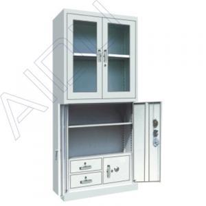 | On section glass door; floor adjustable shelves; under section layer adjustable shelves; built two drawer and safe; | |