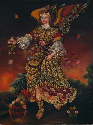 It depicts the Archangel St Barachiel. His name is written on the left bottom of the canvas.