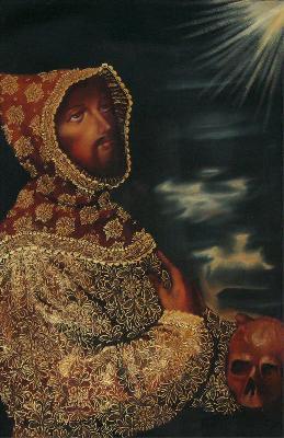 This impressive oil painting depicts Saint Francis of Assisi meditating upon a skull.