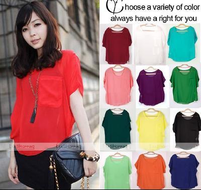 Sexy Girl Women Lady Chiffon Blouse Top Sheer Batwing Short Sleeve Loose T Shirt