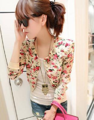 Women Fashion Long Sleeve Floral Print Shrug Short Jacket Chiffon Top 3 Colors