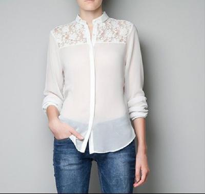 SEXY LONG SLEEVE Perspective LACE CHIFFON SHIRT BLOUSE