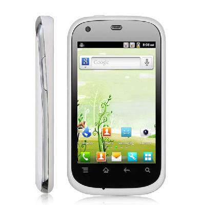 | Type: Touch screen phone Color: White OS: Android 2.3 CPU: MTK6515 650MHz ROM: 256MB RAM: 256MB Battery: 1800mAh Li-ion Capacitive touch (2-point) screen Network frequency: GSM 850/900/1800/1900MHz Dual SIM, Dual standby Dual cameras (the back one with flash light) Wireless internet Gravity sensing system MP3/ MP4/ Bluetooth function supported |