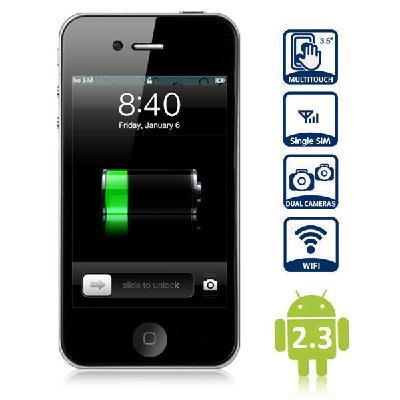 | Type: Touch screen phone Color: Black OS: Android 2.3 CPU: Media Tek MTK6515 1GHz ROM: 512MB RAM: 8GB Capacitive touch screen Network frequency: GSM 850/900/1800/1900MHz Dual SIM, Dual standby Dual cameras (the back one with flash light) Wireless internet Gravity sensing system MP3/ MP4/ Bluetooth function supported |