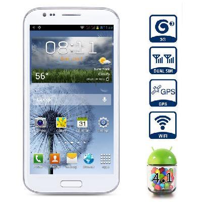 MTK6577 Dual Core 5.3 inch N7100+ Android 4.1 3G Smart Phone with 1GB RAM QHD Screen GPS 5MP Camera (White)