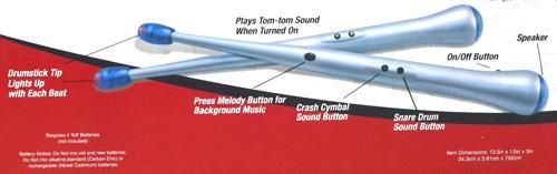Tap the electronic drumstick to create drum, snare and cymbal sounds