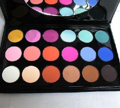 Matte and shimmery eye shadows. Some of the colors are matte, others have little shimmer.