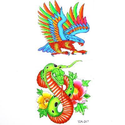 New Temporary Tattoos Snake Eagle Flower Pattern Vivid