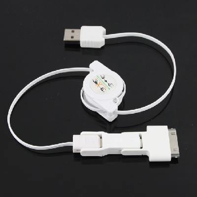 3 in 1 Retractable USB to Mini / Micro USB / iPhone 4 4S iPod Sync Charging Cable