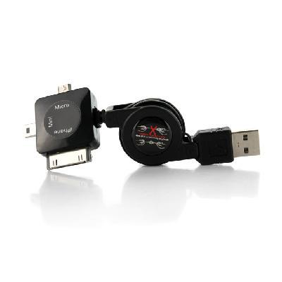 3 in 1 Retractable USB Charger Sync Cable for iPhone (Mini + Micro + Apple 30pin Connector)