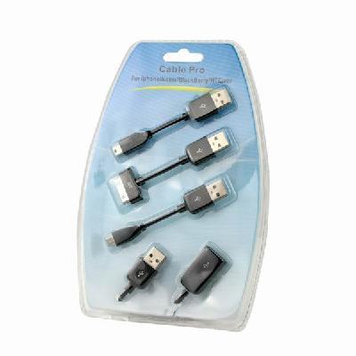 4 in 1 Black USB Extension Cable Pro Set For iPhone Nokia Blackberry HTC / etc