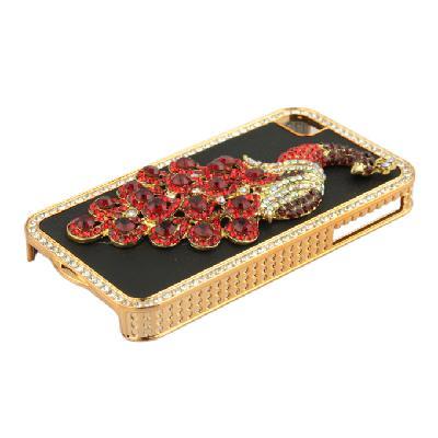 Handmade IPHONE 4G 4S high-end mobile phone shell | Red Peacock | flash drilling | black leather