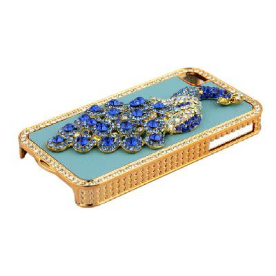 Handmade IPHONE 4G 4S high-end mobile phone shell | Blue Peacock | flash drilling | sky blue leather