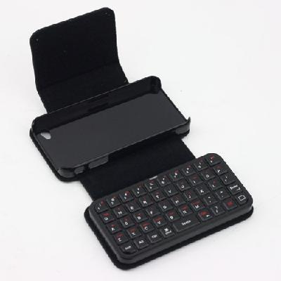 Mini Wireless Bluetooth Keyboard with Leather Case Black for iPhone 4