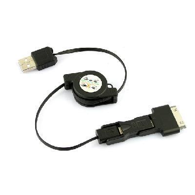 The 3-in-1 USB Retractable Charging and Sync Cable utilizes a patented interlocking design that uniquely allows access to all 3 connectors giving you maximum compatibility for most mobile devices needing Micro and Mini USB. The Works with iPhone and Made for iPod certification ensures compatibility with most Apple devices including the iPhone 4, 3GS, iPod and iPad. The retractable cable makes it compact and convenient.