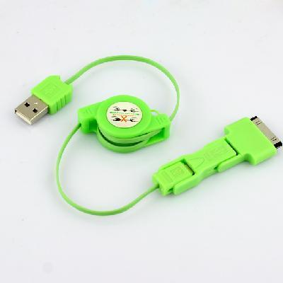 3 in 1 Retractable USB to Mini / Micro USB / iPhone 4 4S iPod Sync Charging Cable