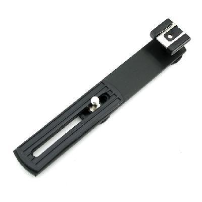 It features a sliding 1/4 camera screw to allow for variable positing of the flash or other accessory at the camera's side