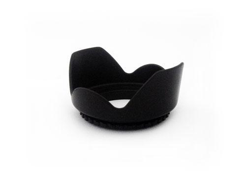 ` Crown shaped lens hood allows wider shooting angle than the round hood