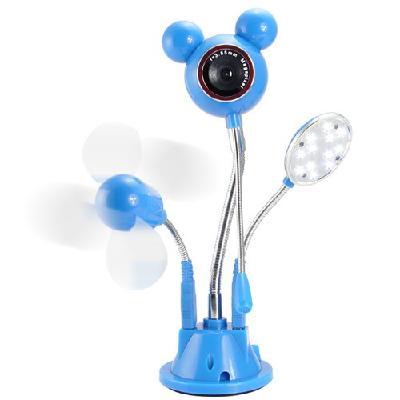- Primary Function: USB webcam with LED light, microphone and fan