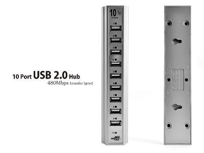 10 Port USB 2.0 Hub - 480Mbps Transfer Speed