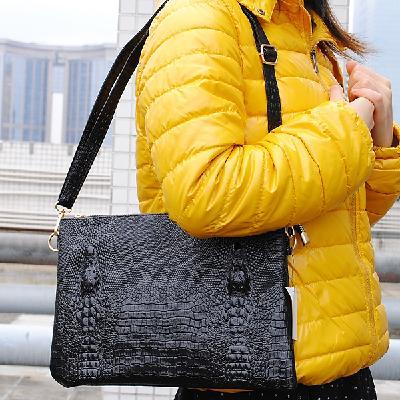 Three-dimensional noble double crocodile head grain high-grade imitation in the paint, lady envelope bag late outfit bag shoulder bag black
