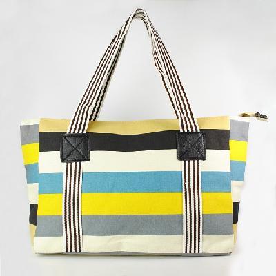 Hit color striped cotton canvas portable shoulder bag